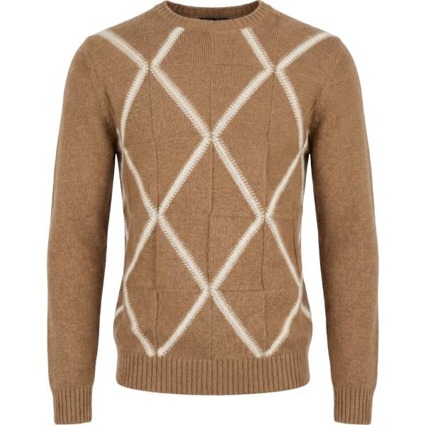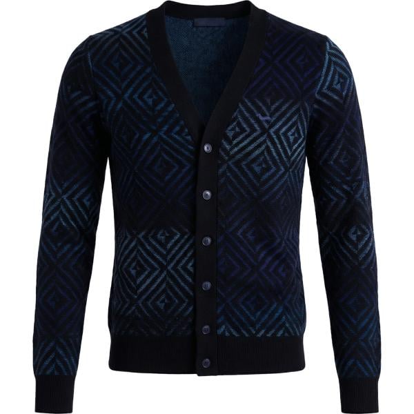 Maglione da uomo in blu scuro geometrica girocollo in lana