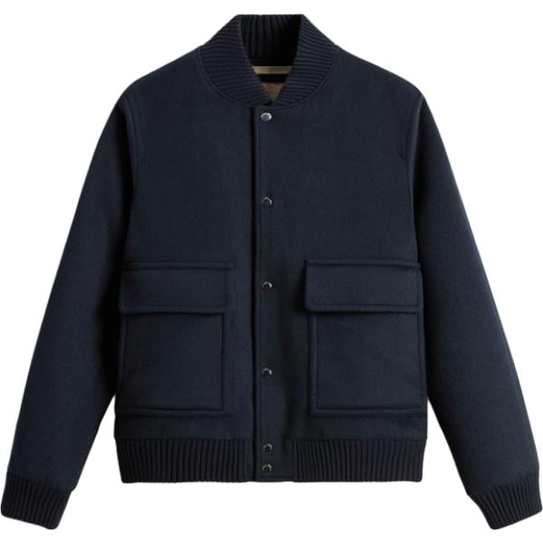 Bomber da uomo in grigio chiaro collo alto con zip in lana