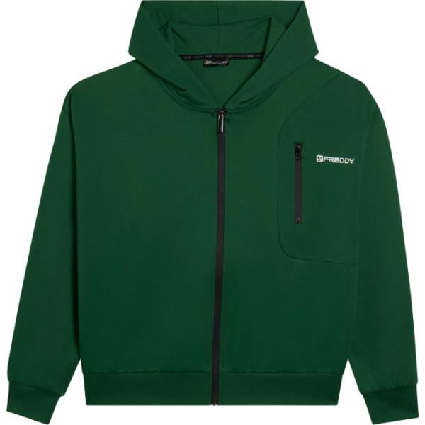 Felpa con cappuccio da uomo in verde scuro collo con cappuccio con zip