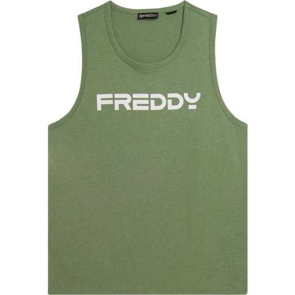 Canottiera da uomo in verde oliva con stampe con spalline in cotone