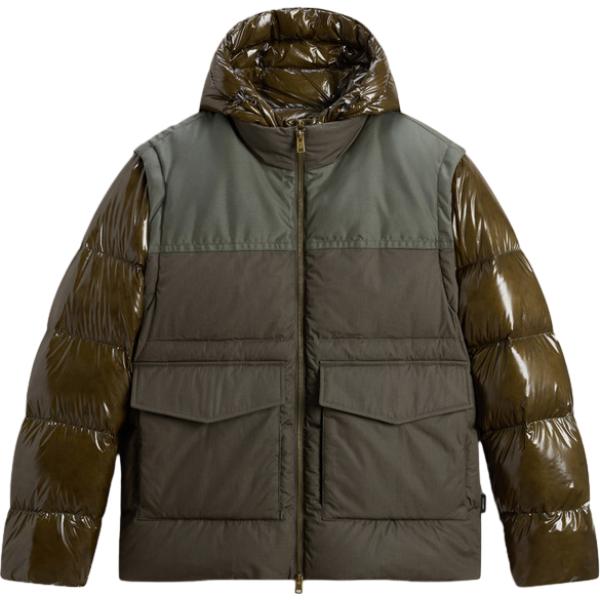 Giacca soprabito da uomo in verde scuro collo con cappuccio con zip
