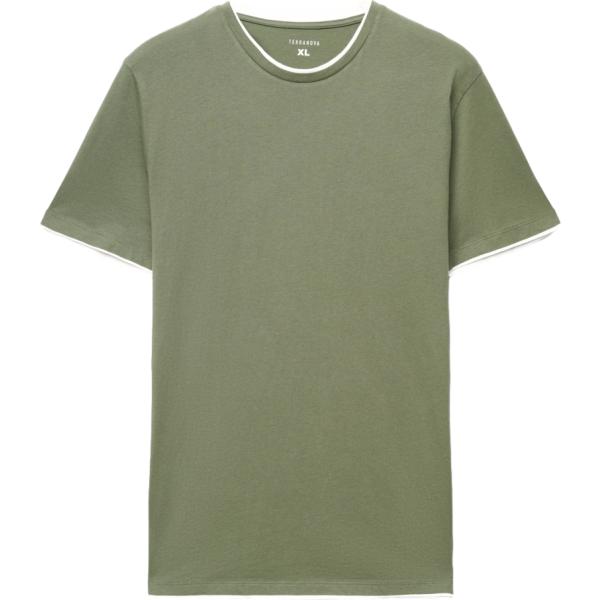 T-shirt da uomo in verde oliva girocollo a maniche corte in cotone