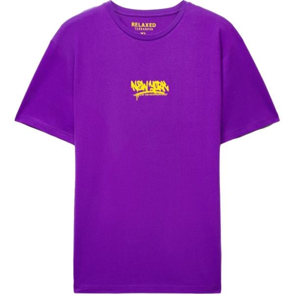T-shirt da uomo in viola chiaro girocollo lungo in cotone