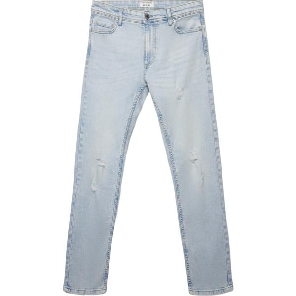 Jeans strappati da uomo in viola chiaro effetto strappato cinque tasche con zip in denim
