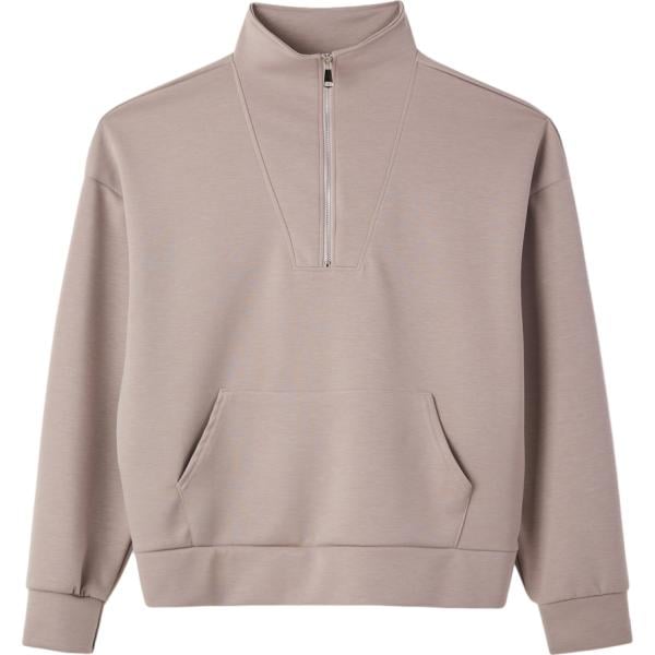 Felpa da uomo in beige sabbia collo senza cappuccio a maniche lunghe con zip in viscosa