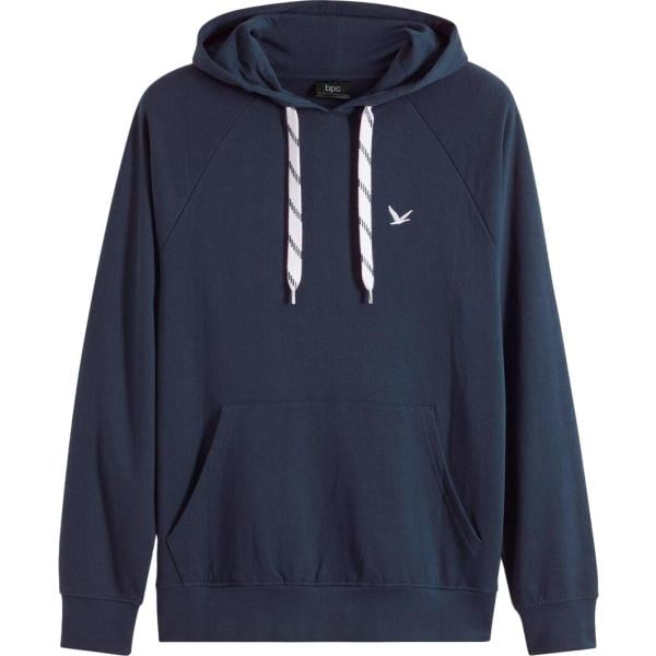 Felpa con cappuccio da uomo in blu medio collo con cappuccio con zip in cotone organico