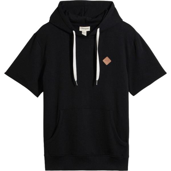 Felpa con cappuccio da uomo in nero pece collo con cappuccio a maniche corte
