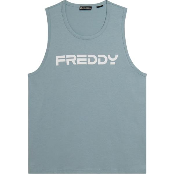 Canottiera da uomo in blu scuro con stampe con spalline in cotone