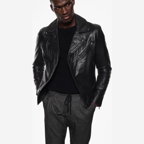 Giacca soprabito da uomo in nero pece con zip in ecopelle