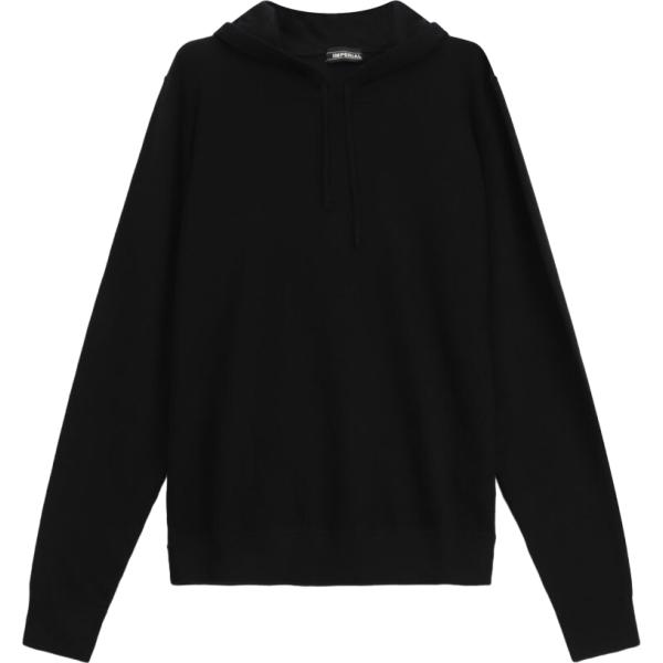 Maglione da uomo in nero pece collo con cappuccio con coulisse