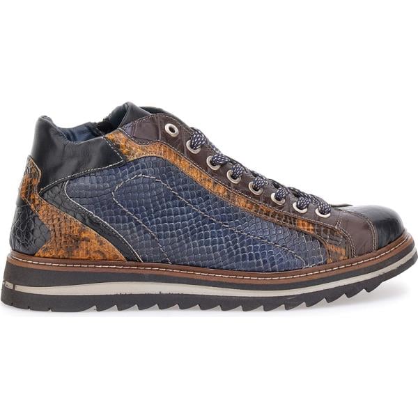 Scarpe stringate da uomo in blu scuro con zip in pelle
