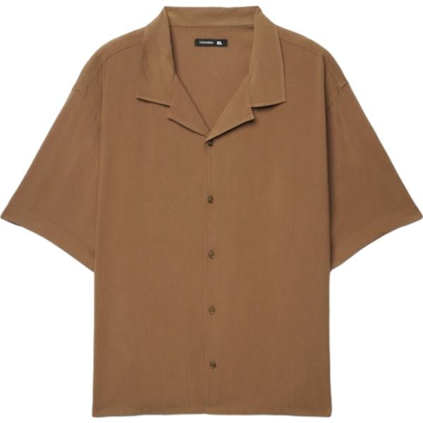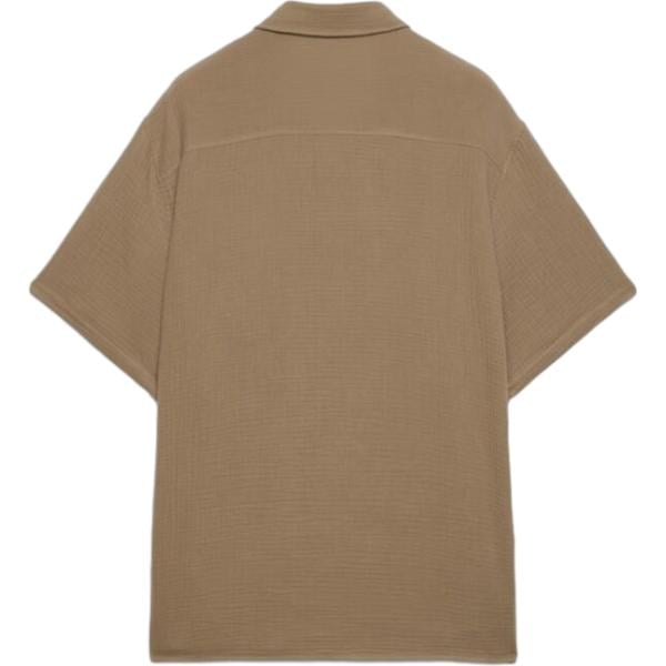 Camicia a maniche corte da uomo in verde oliva con stampe a maniche corte con bottoni in cotone