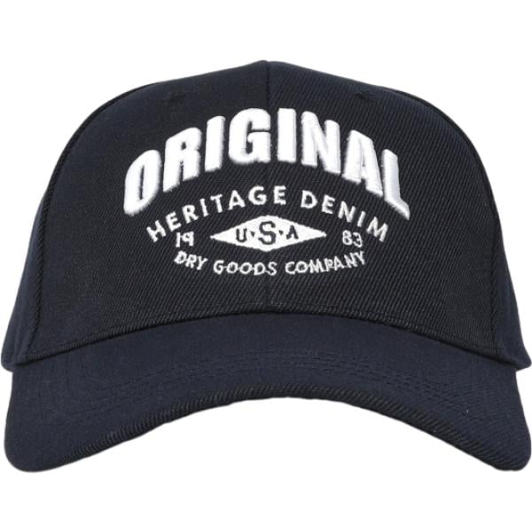 Cappello con visiera da uomo in blu scuro con stampe con cinturino in metallo