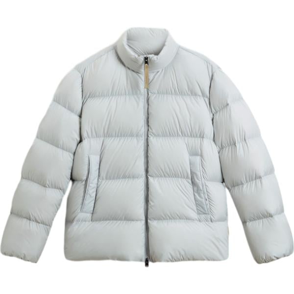 Piumino da uomo in grigio chiaro collo alto tessuto impermeabile con zip