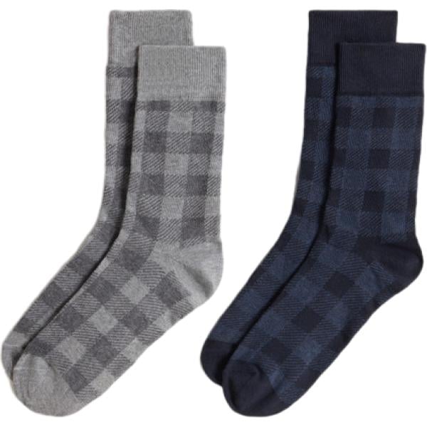 Questo set comprende due paia di calze lunghe realizzate in filo di Scozia, note per la loro eccezionale qualità e durata. Realizzate in maglia rasata, queste calze sono al 100% in cotone, offrendo comfort e traspirabilità ottimali per tutto il giorno. Una caratteristica pratica e distintiva è il filo colorato sulla parte alta delle calze. Perfette per chi cerca eleganza e funzionalità in un unico prodotto.
