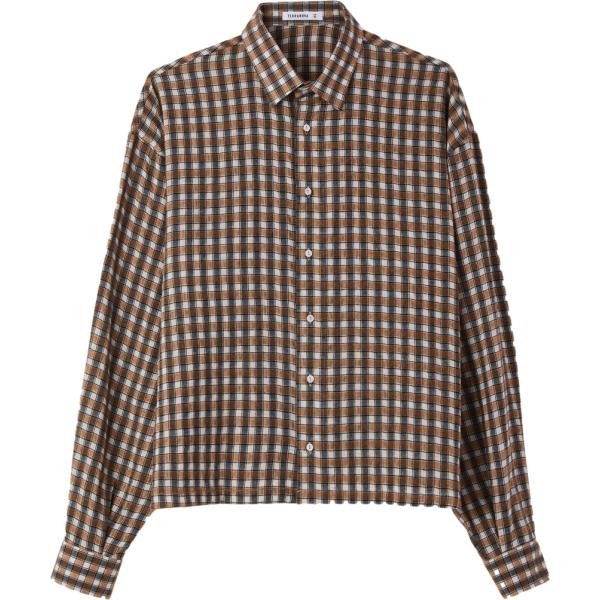 Camicia da uomo in marrone scuro a quadri con bottoni in pile