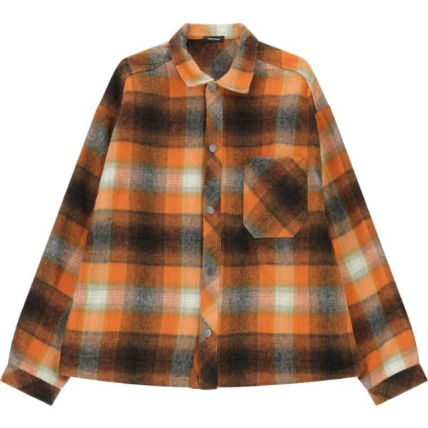 Camicia da uomo in marrone scuro a quadri con bottoni in pile