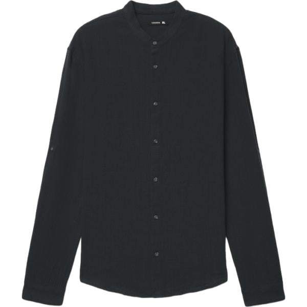 Camicia da uomo in nero pece collo coreana a maniche lunghe con bottoni in cotone