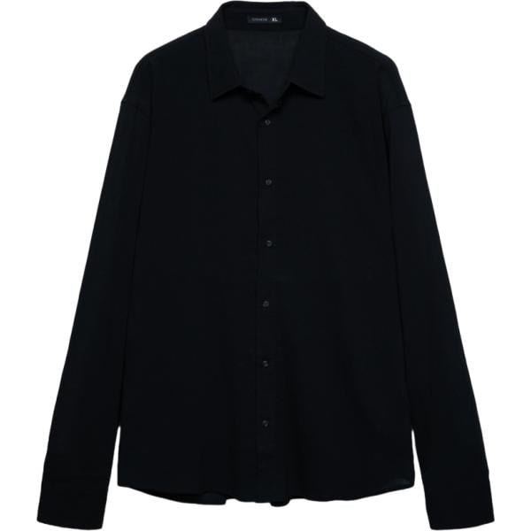Camicia da uomo in nero pece plissè collo classico a maniche lunghe con bottoni in cotone