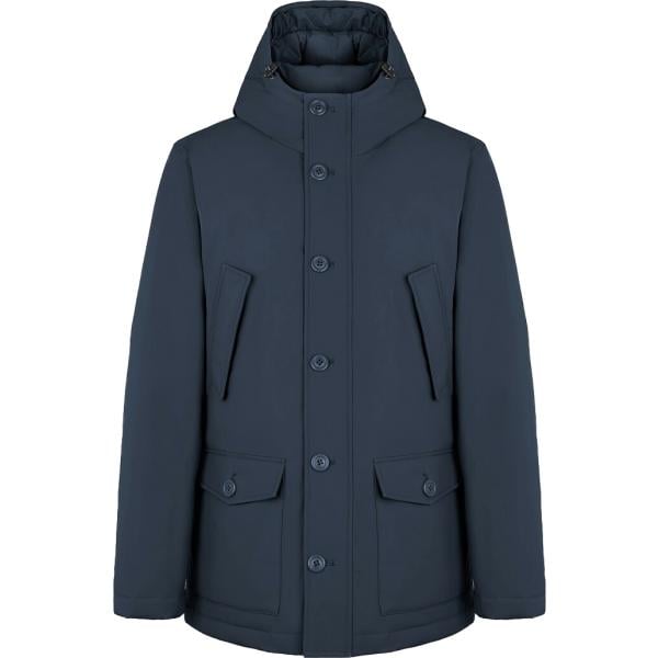 Parka da uomo in blu scuro collo con cappuccio con zip in poliestere