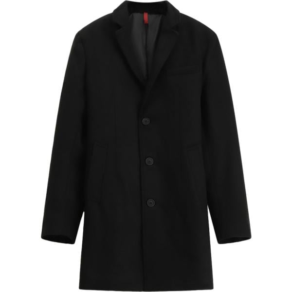 Cappotto da uomo in nero pece collo classico made in italy con bottoni in lana