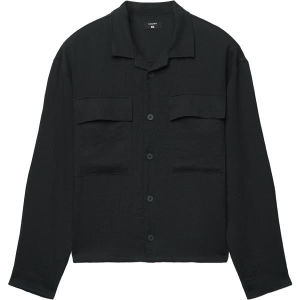 Cappotto da uomo in nero pece a maniche lunghe con bottoni in viscosa