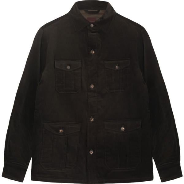 La giacca camicia presenta tasche a toppa esterne chiuse con pattina e bottone. È realizzata in una combinazione di tessuti naturali come cotone, lino e lyocell, una fibra derivata dalla cellulosa che garantisce traspirabilità e morbidezza al tatto. La vestibilità è regolare.