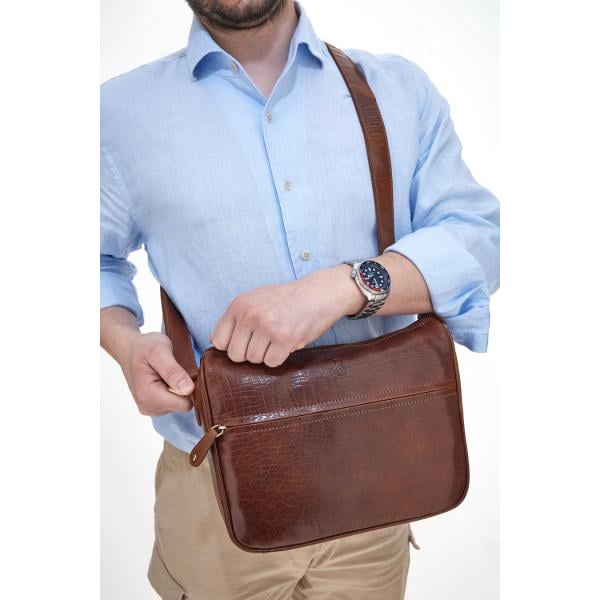 Zaino da uomo in marrone scuro con zip