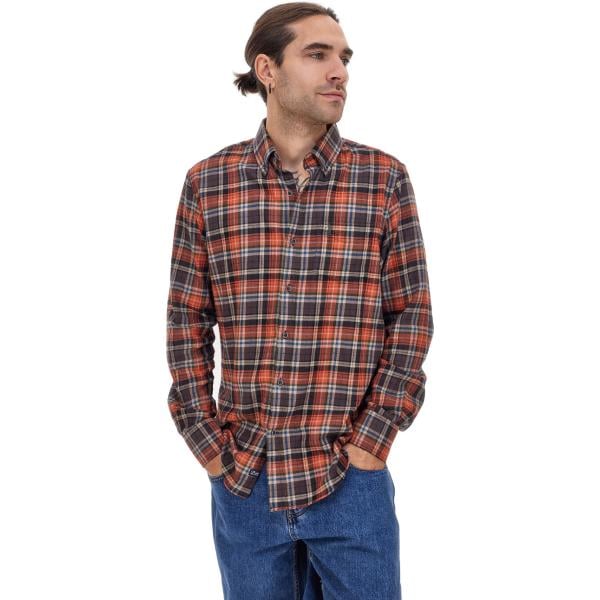 Camicia da uomo in arancione scuro a quadri collo a dolcevita a maniche lunghe in cotone