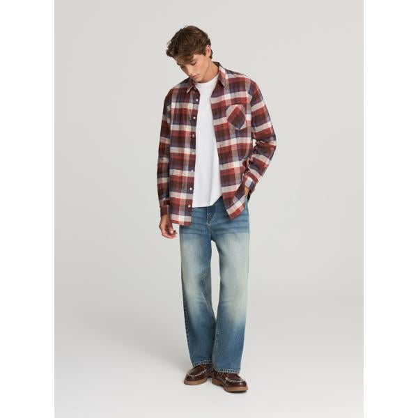 Camicia da uomo in rosso classico a quadri in pile