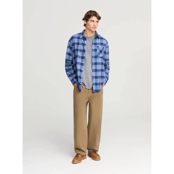 Camicia da uomo in marrone scuro a quadri con bottoni in pile