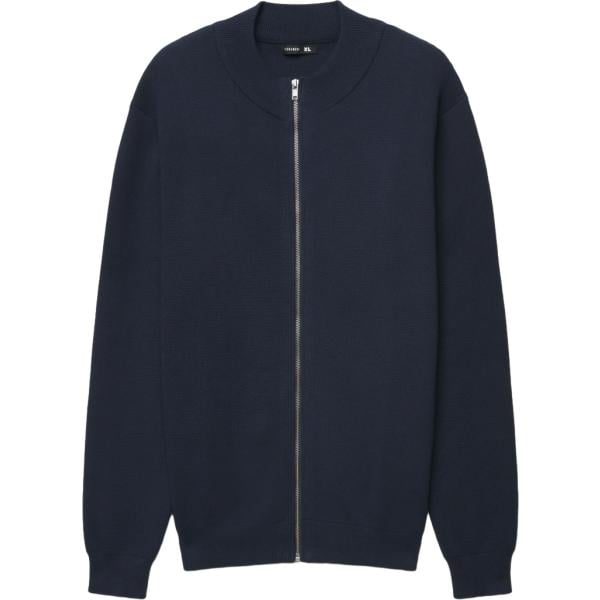 Cardigan da uomo in blu scuro collo alto a maniche lunghe con zip in cotone