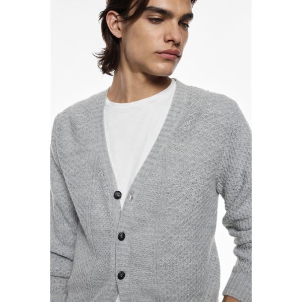 Cardigan da uomo in grigio chiaro collo a v a maniche lunghe