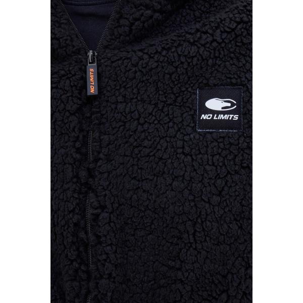 Felpa con cappuccio da uomo in nero pece collo con cappuccio con zip in pile