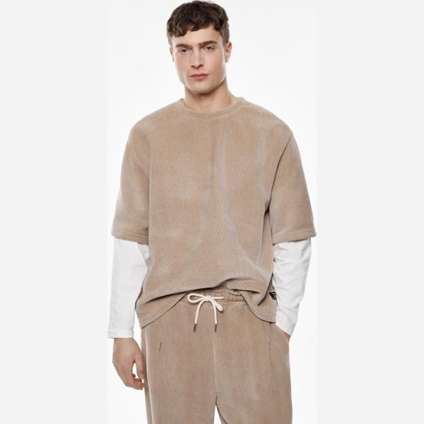 Felpa da uomo in beige sabbia collo senza cappuccio