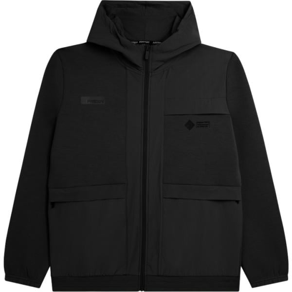 Felpa con cappuccio da uomo in nero pece collo con cappuccio lungo con zip in nylon