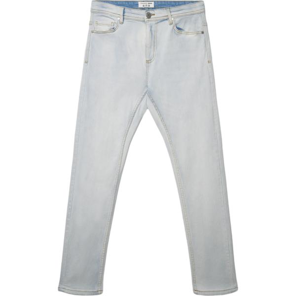 Jeans skinny da uomo in grigio chiaro cinque tasche con zip in denim