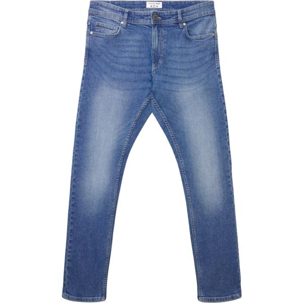 Jeans skinny da uomo in blu scuro lungo con zip in denim