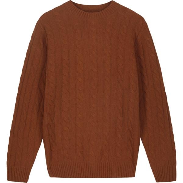 Maglione da uomo in marrone scuro lavorato a maglia girocollo in lana