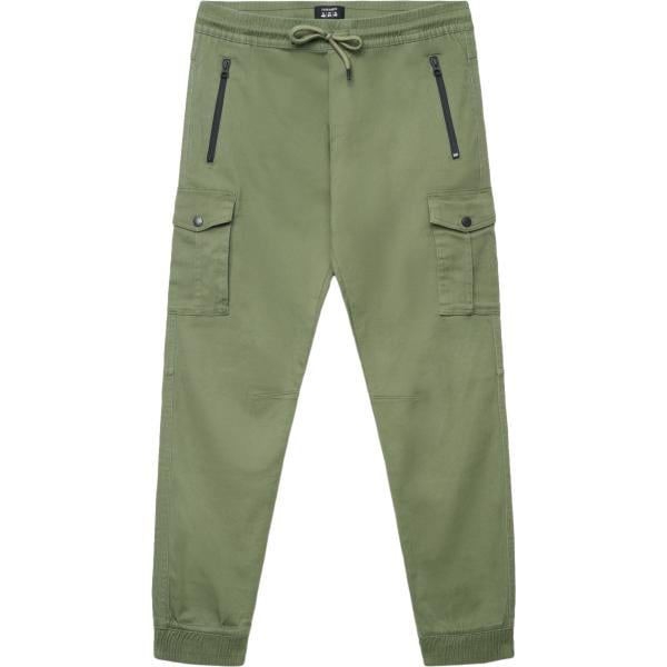 Pantaloni cargo da uomo in verde oliva con zip in cotone