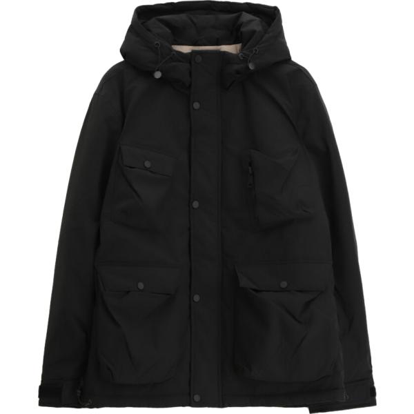 Parka da uomo in nero pece collo con cappuccio tessuto impermeabile con zip in poliestere