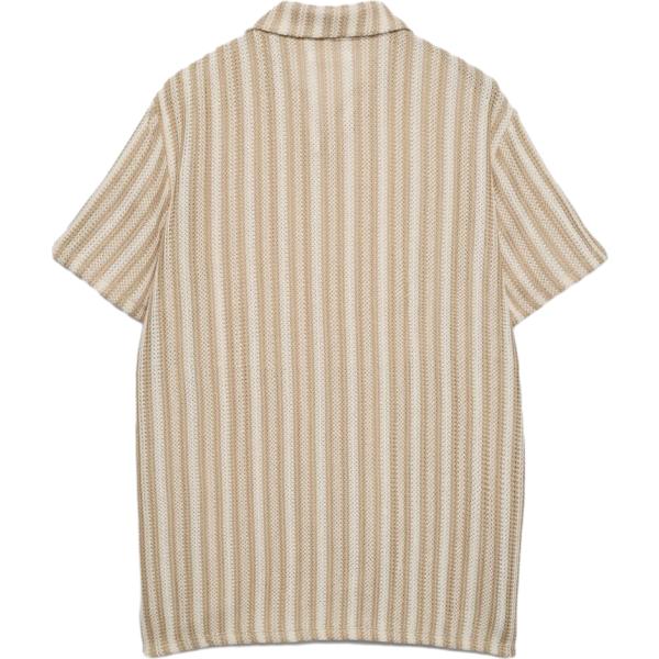 Polo da uomo in beige sabbia a righe collo classico a maniche corte con bottoni in cotone