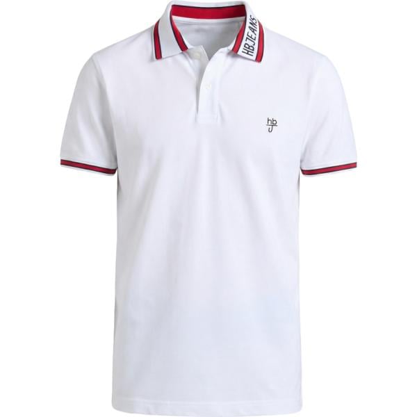 Polo da uomo in bianco neve con stampe lungo a maniche corte