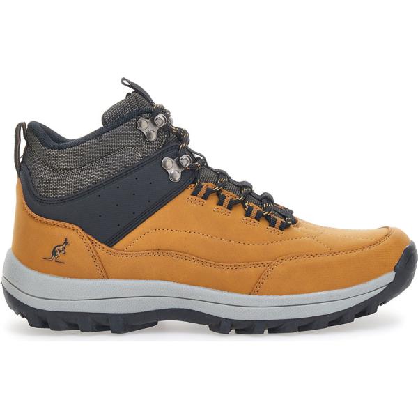 Stivaletti da uomo in marrone scuro tessuto impermeabile con lacci in pelle