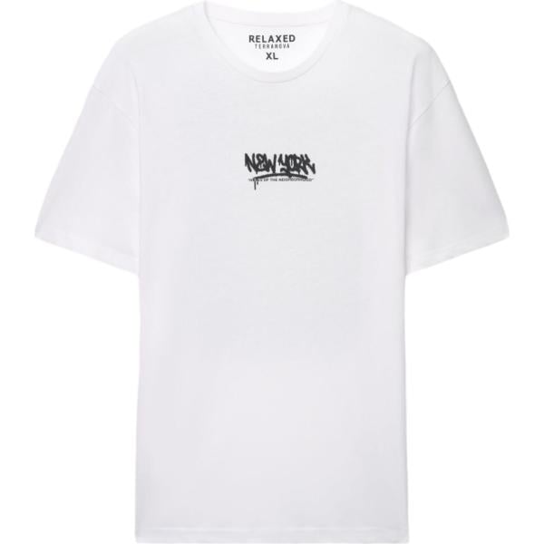 T-shirt da uomo in bianco neve con stampe girocollo a maniche corte in cotone