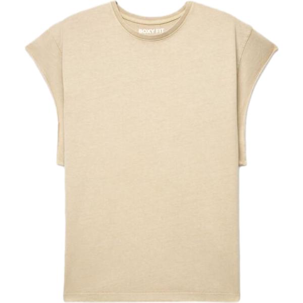T-shirt da uomo boxy in beige sabbia effetto delavè girocollo in cotone