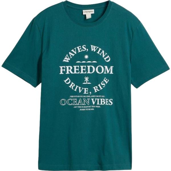 T-shirt da uomo in verde scuro con stampe girocollo a maniche corte