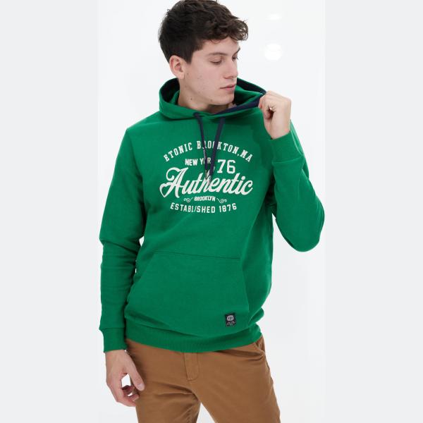 Felpa da uomo senza cappuccio con stampa stile college frontale, in tessuto pesante. Ideale per un look casual o sportivo. Vestibilità ampia.