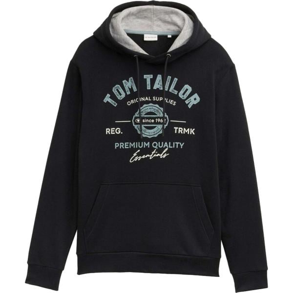 Felpa con cappuccio da uomo in blu scuro con stampe collo con cappuccio in cotone