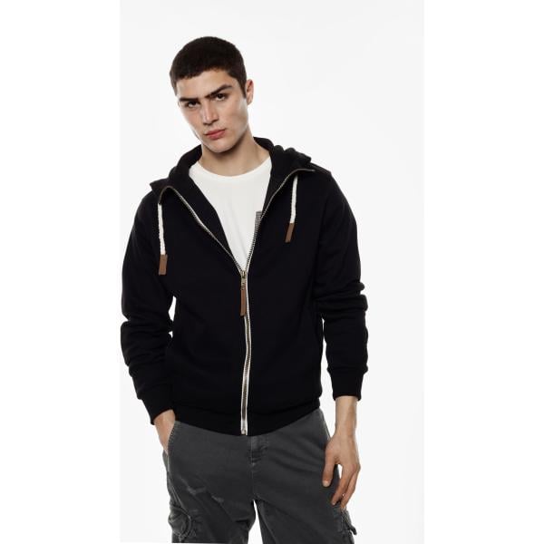 Felpa con cappuccio da uomo in nero pece collo con cappuccio con zip in cotone organico